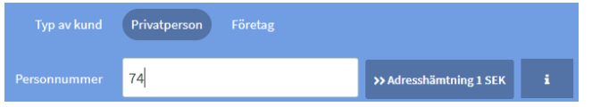 Genom att fylla i personnummer för privatkunder alt. organisationsnummer för företag hämtas uppgifter från Soliditet.