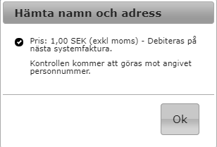 Infoknappen informerar prisbild och hur kostnaden kommer debiteras.