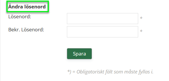 När du har gjort förändringen så klickar du på "Spara"-knappen för att spara. Nästa gång du ska logga in så använder du ditt nya lösenord.