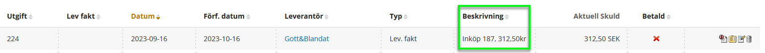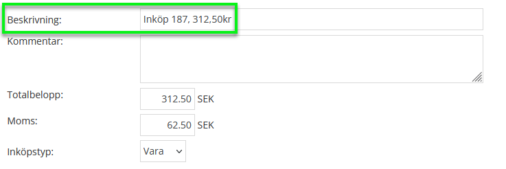 Beskrivningen kommer då att visas när ni skapat utgiften i utgiftsvyn.