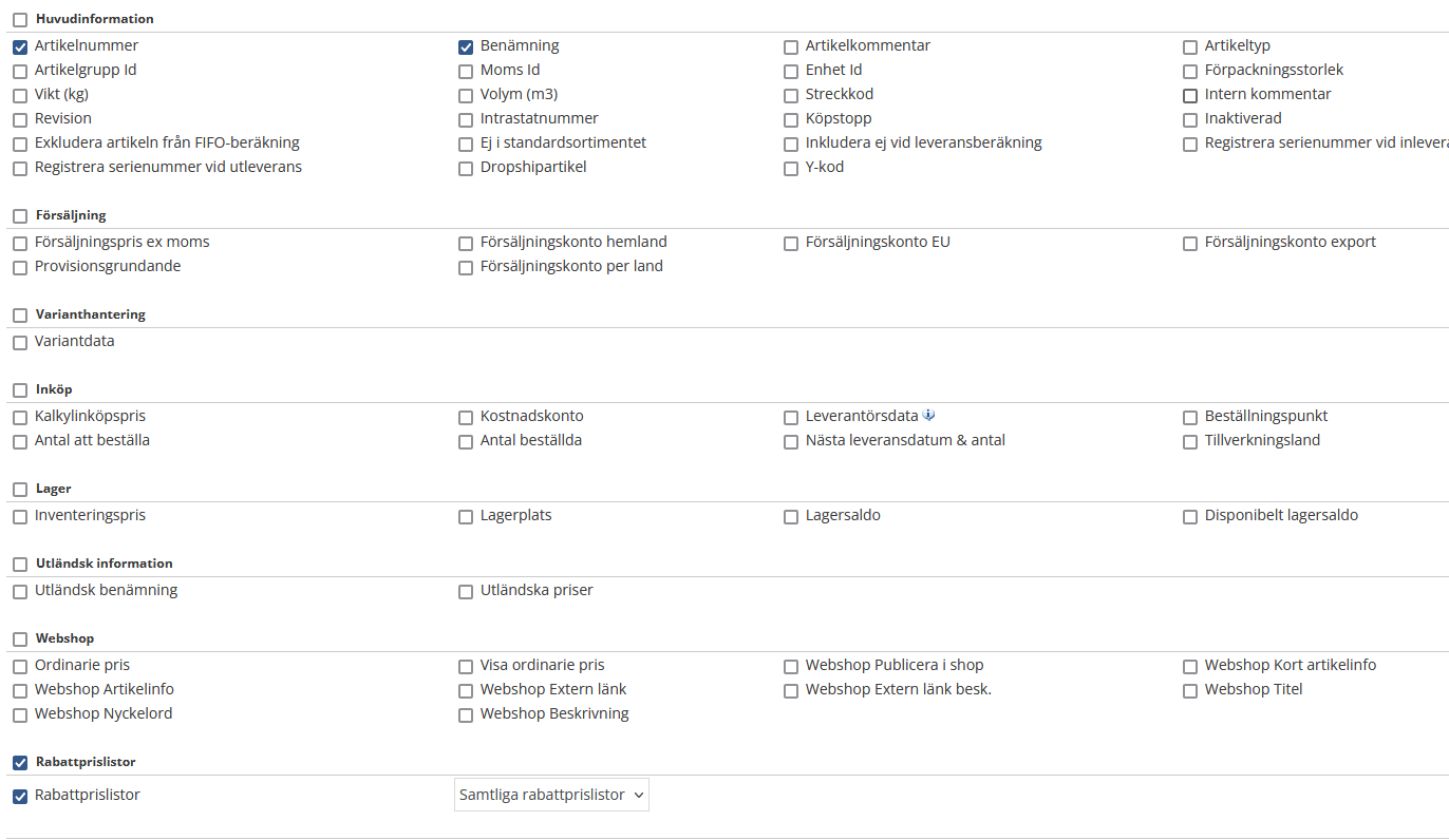 Börja nu med att exportera ut din rabattprislista under Inställningar - Import/Export genom att markera följande fält:
