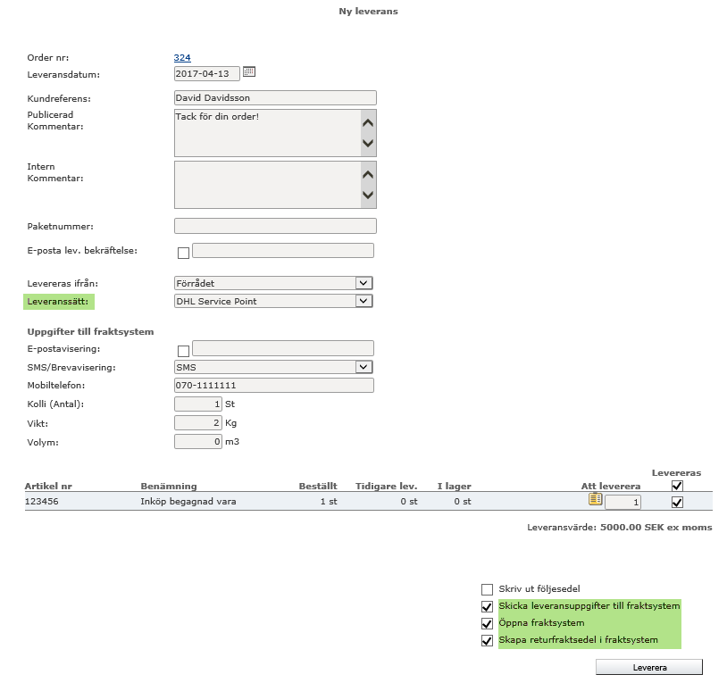 Glöm inte spara leveransättet om du förändrar något!