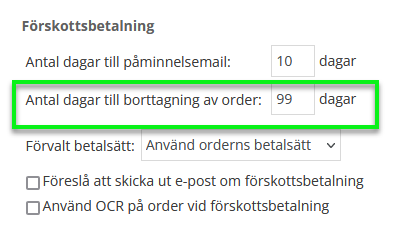 Är ordern äldre än de dagar som visas på inställningen så försvinner ordern per automatik när man gör en editering på ordern.