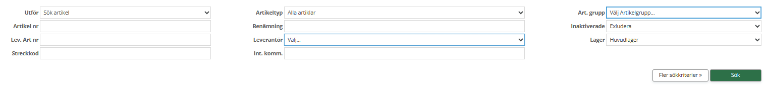 Genom att klicka på "Fler sökkriterier" visas fler sökkriterier, se nedan: