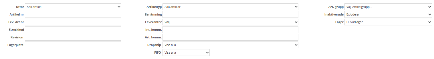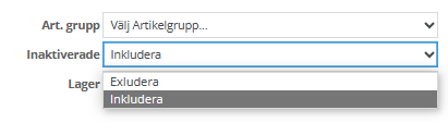 Välj i rullgardinen sökkriterier för de artiklar som skall inaktiveras.
