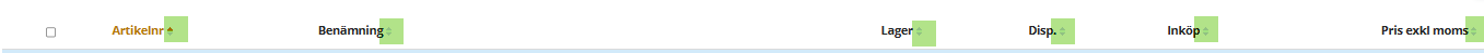 OBS! För att enklast komma tillbaka till denna standardvy efter en sökning/filtrering klicka på ”Visa Artiklar” i den övre menyn.