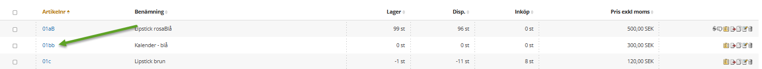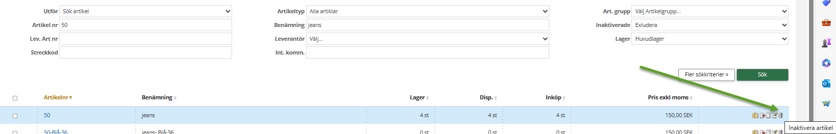 Observera att inaktiverade artiklarna inte visas vid daglig användning, enbart när man valt att inkludera inaktiverade artiklar vid visa/söka.