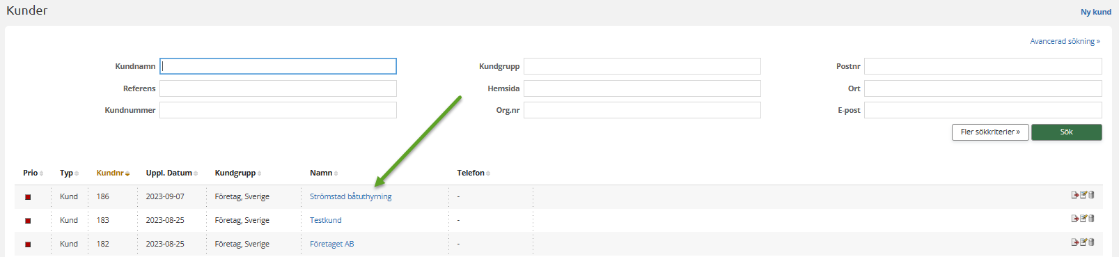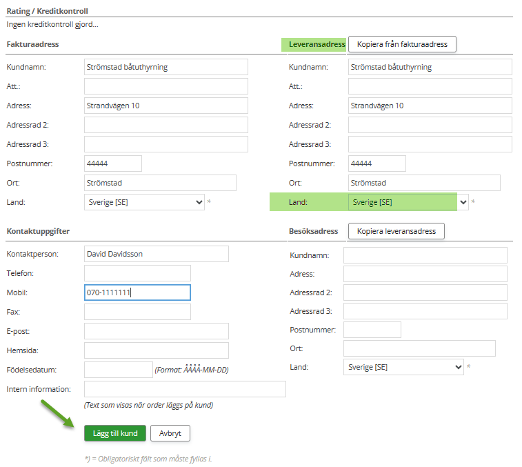 När alla uppgifter om kunden är ifyllda glöm inte att klicka på Lägg till kund längst ner på sidan.