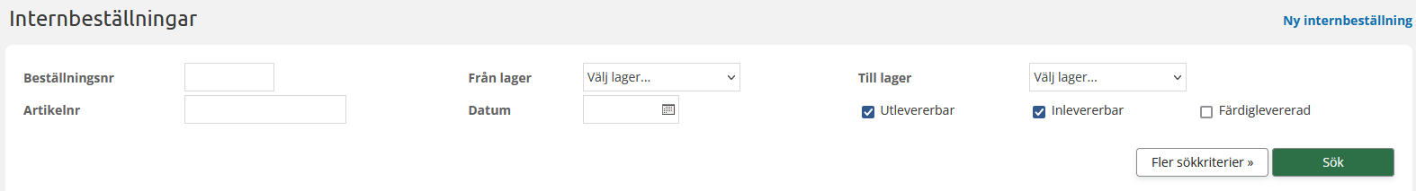 Sök internbeställning