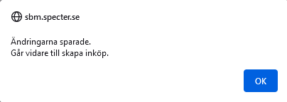 Väljer du ”Spara och skapa inköp”, visas nedan meddelande: