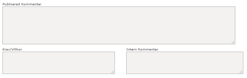 Krav/Villkor, texten kommer upp i separat ruta på inköpsordern. Intern Kommentar, detta fält är enbart för internt bruk, om en inköpsorder har intern kommentar syns ikon ( ) Håll pekaren över pratbubblan, då visas kommentaren (sökbart fält)