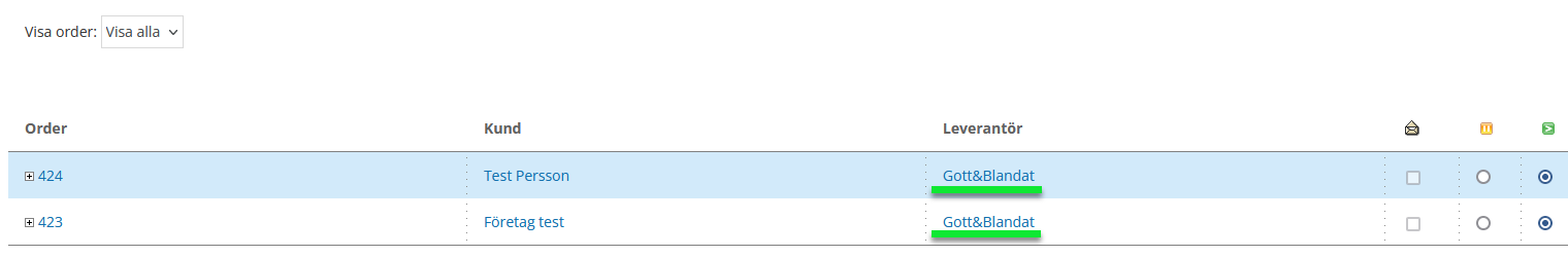 Ikonen på ordervyn har nu ändrat sig till statusen ”Dropshiporder skapad”(