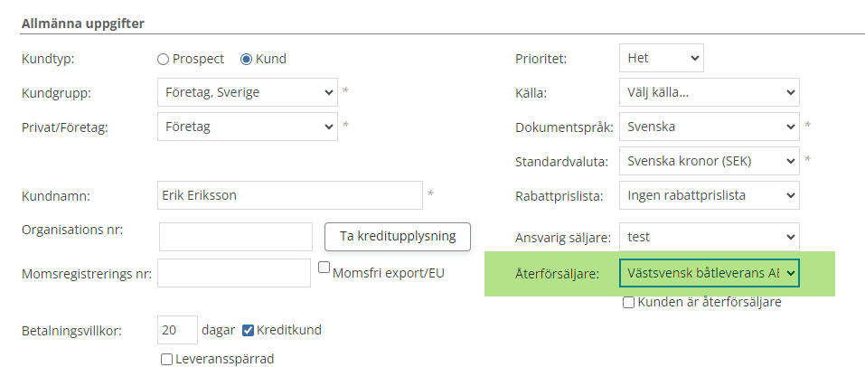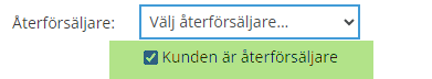 Alternativt kan det anges att kunden själv är återförsäljare och då läggs kunden även upp i registret över återförsäljare.