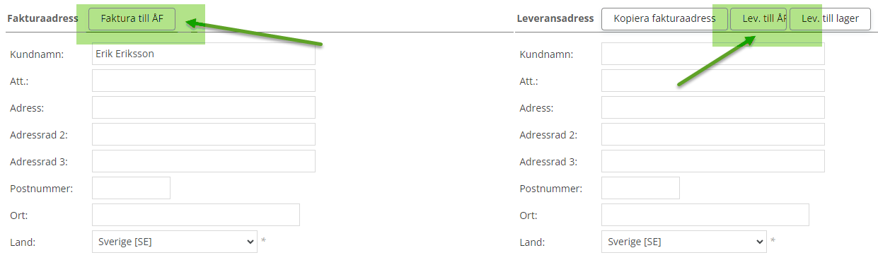 På ordern kan anges om ordern skall faktureras eller levereras till återförsäljaren istället för till kund.