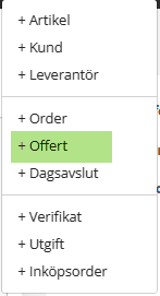 Offerter hittar du under huvudmenyn Försäljning, då hamnar ni direkt i vyn Sök offert. Alternativt under snabbmenyn:
