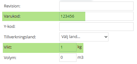 - På varje artikel måste ni ha varukod (intrastat) och vikt.