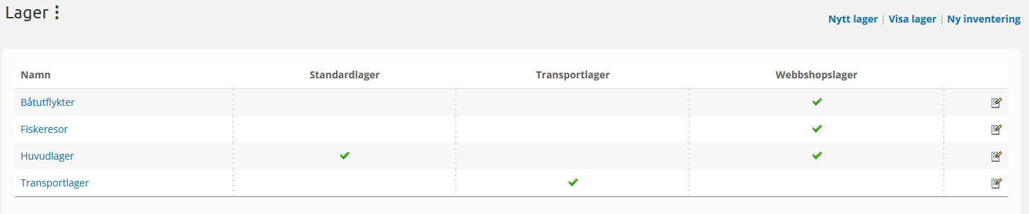Här finns även möjlighet att styra om lagret skall synas för webbshoppen. OBS! Det förutsätter att er webshop har utökat sin koppling med den funktionaliteten och för att säkerställa detta hänvisar vi till att ta kontakt med dem.