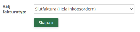 Det här alternativet skapar en leverantörsfaktura på hela beloppet på inköpsordern oavsett antal delleveranser.