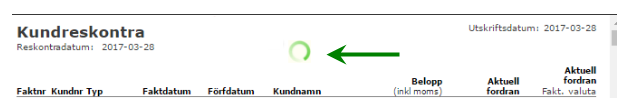 I de fall där rapporten har många rader visas nu en grön snurrande symbol under den tid då rapporten kommer upp på skärmen tills den är klar.
