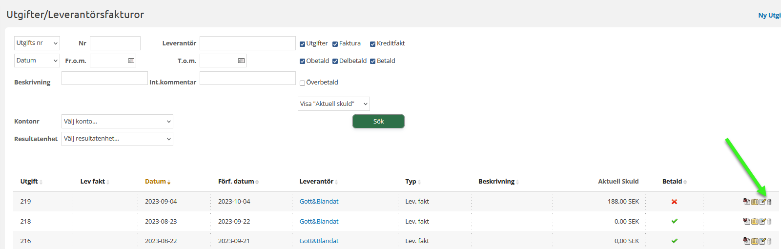 * Utgiften/leverantörsfakturan måste vara den senast skapade och alltså ha det högsta utgiftsnumret.