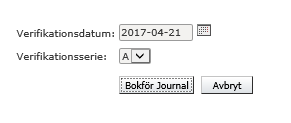 När journalen är skapad visas en knapp i det högra hörnet med texten "Bokför denna journal". Om du vill gå vidare och bokföra journalen, dvs skapa ett verifikat av den så klickar du på denna knapp. Du kan välja att inte bokföra journalen direkt och i de fallen så stänger du bara popup-fönster med journalinformationen.