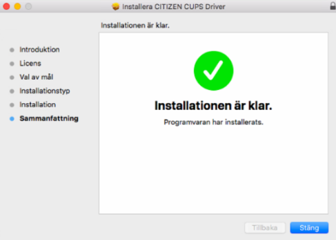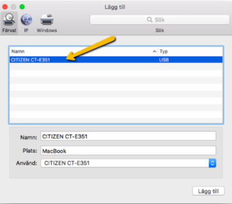 Denna guide beskriver hur du installerar och ställer in kvittoskrivaren Citizen CT-E351 på en macOS-dator.