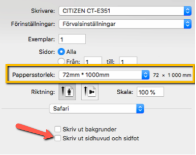- Starta Utskrift: Öppna kassan i webbläsaren Safari. Skriv ut ett kvitto eller en kopia.