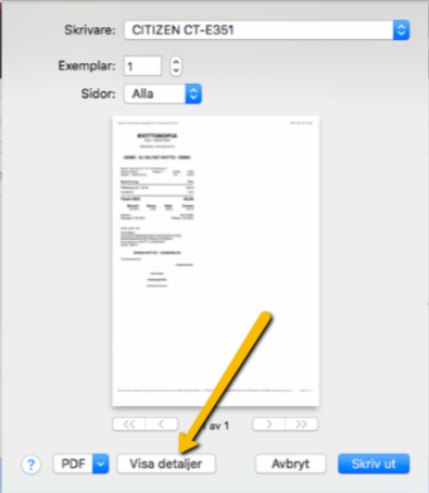 Visa Detaljer: I utskriftsdialogen, klicka på knappen Visa detaljer.