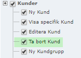 Möjligheten att ta bort kund sätts som en rättighet på användarnivå. Admin-användaren har rättigheten per automatik och kan välja att aktivera den för sina användare.