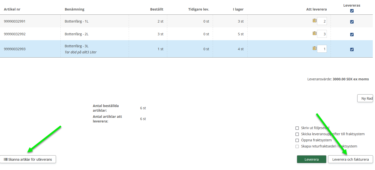 Klicka på gröna krysset (ovan) för att komma till leveransen (nedan).