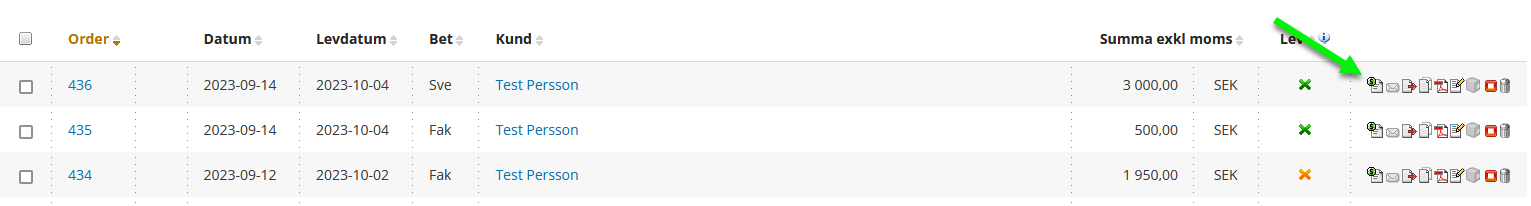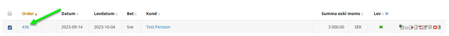 Ett annat sätt att skapa faktura är i ordervyn där man klickar på fakturaikonen.
