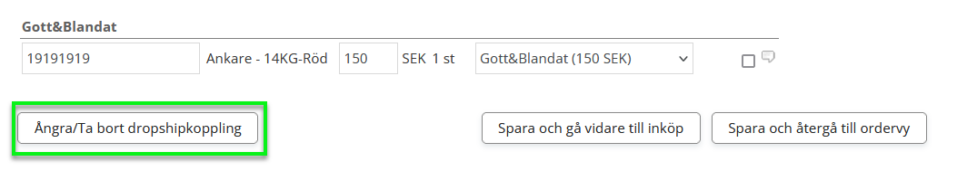 Sedan kan ni avbryta inköpsorder och där efter klicka er in på dropship i kundordern, Där kan ni sedan klicka på knappen som heter " Ångra/Ta bort dropshipskoppling