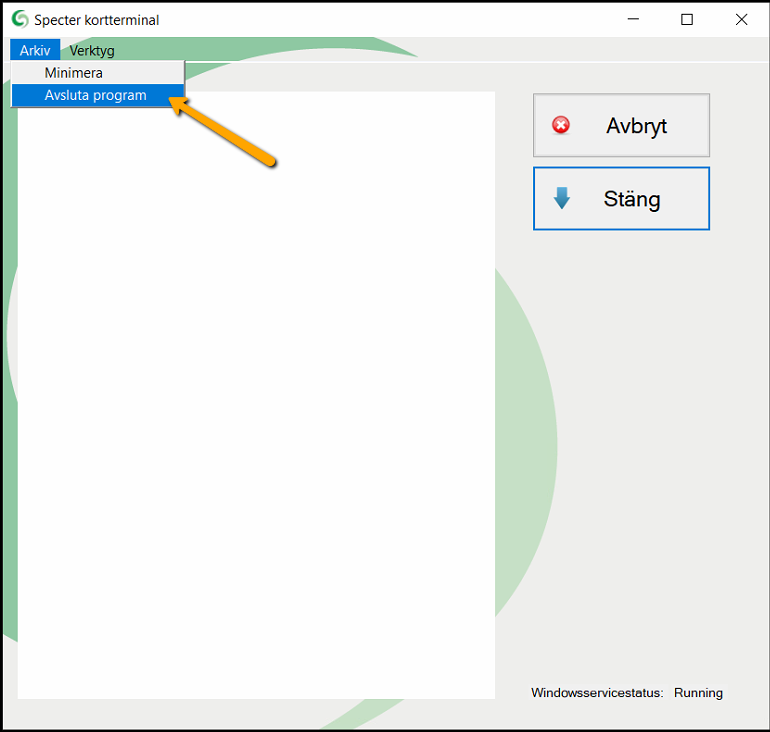 Starta programmet Specter Kortterminal igen eller starta om Windows/datorn.