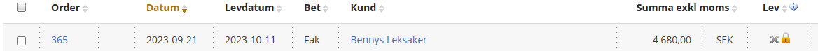 När du klickar på hänglåset och registrerar inbetalningen bokförs den på 2420 (förskott från kunder) och 1930 (bankkonto). Kunden får använda mejl och orderbekräftelse som bokföringsunderlag.