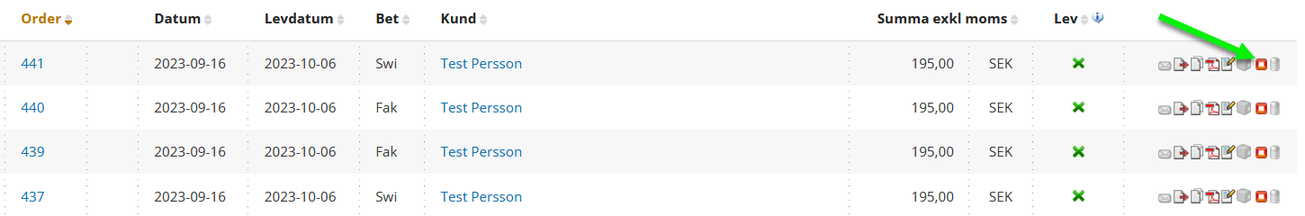 En inköpsorder kan avbrytas från inköpsorderlistningen. Smidigt om du t.ex. fått en delleverans och de restade artiklarna inte kommer levereras. När en inköpsorder avbryts justeras även kommande lagerrörelser. Avbruten inköpsorder döljs i den ordinarie listningen av inköpsordrar.