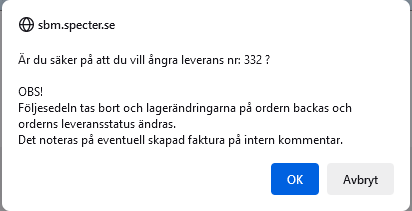 För att ångra en utleverans av order klicka på soptunnan i bilden nedan.